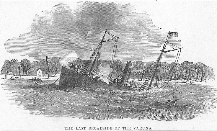 The Union gunboat Veruna (not Verona), pictured above, was sunk in April 1862 and seems to match George’s sketch. I could not find any record of the other wrecks, however.