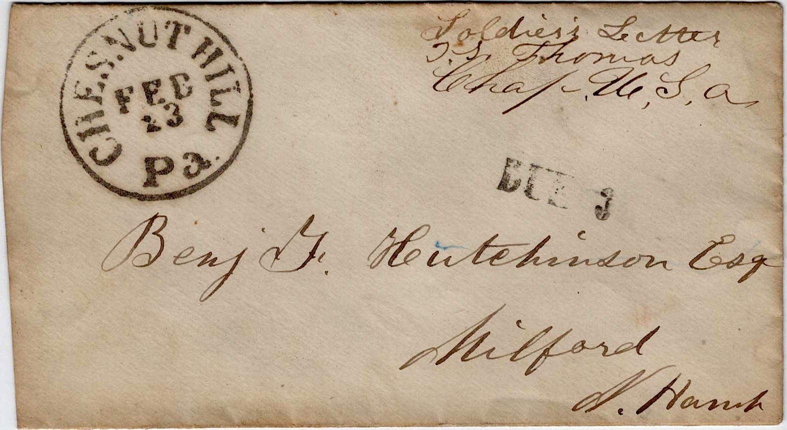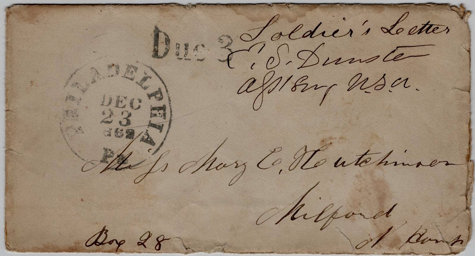 It don’t make much difference how you direct if the post master only makes out that the letters is to go to Army Hospital at Chestnut Hill, Philadelphia.
