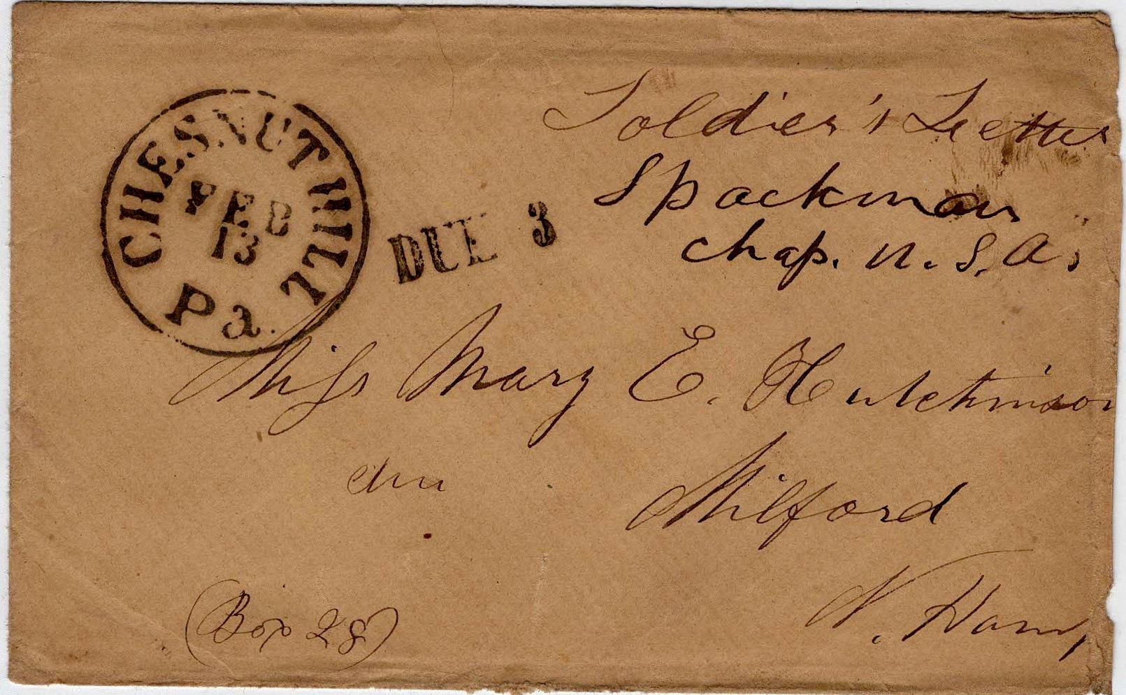 Charles wrote all four of these letters from hospitals in Philadelphia, Pennsylvania, while serving in Co. F, 9th New Hampshire Infantry. He enlisted on 15 August 1862 and was mustered out on 16 March 1863, discharged for disability. After returning home, Charles lived less than two years. His death on 6 January 1865 was attributed to consumption.