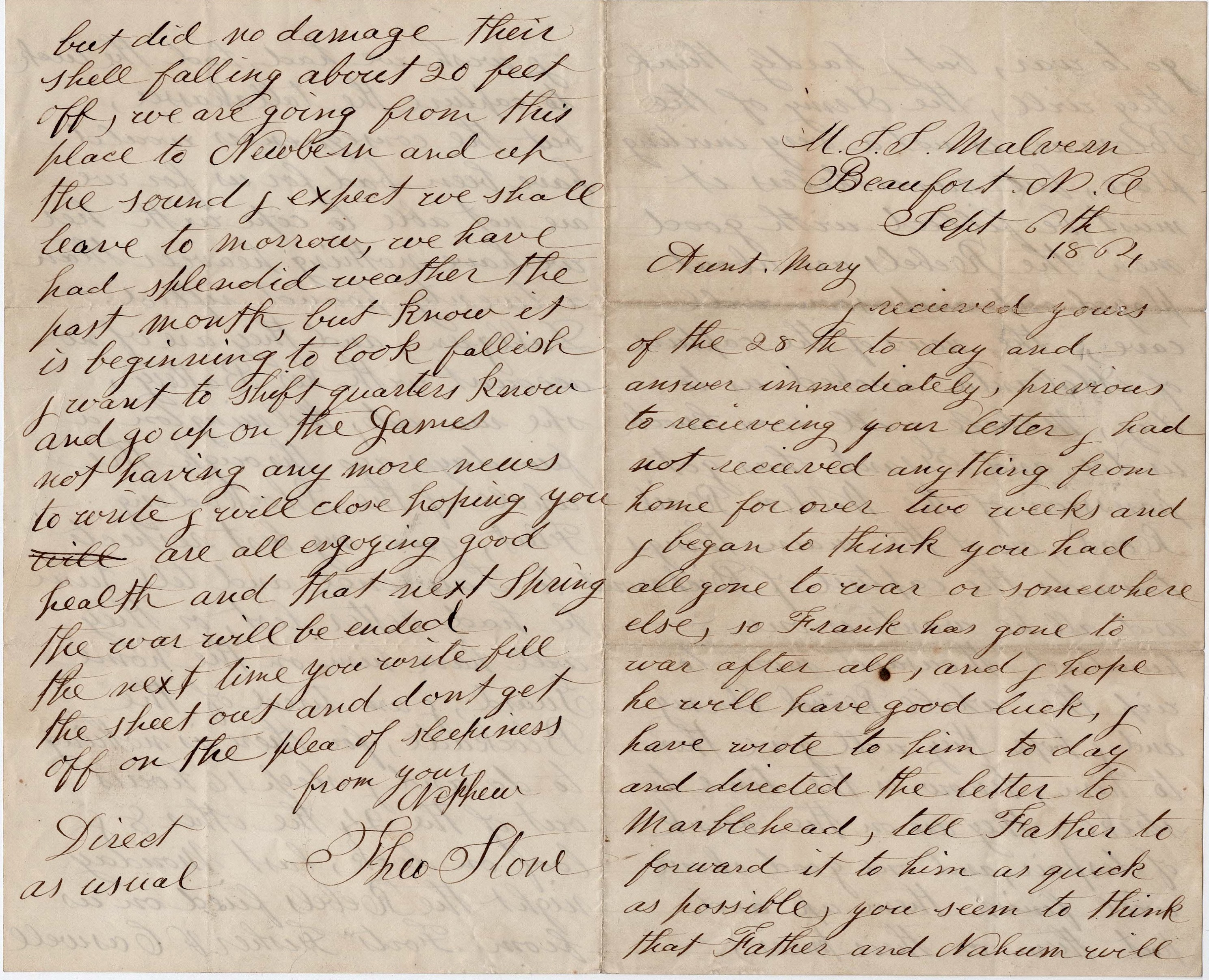 1864: Theodore Stone to his Aunt Mary