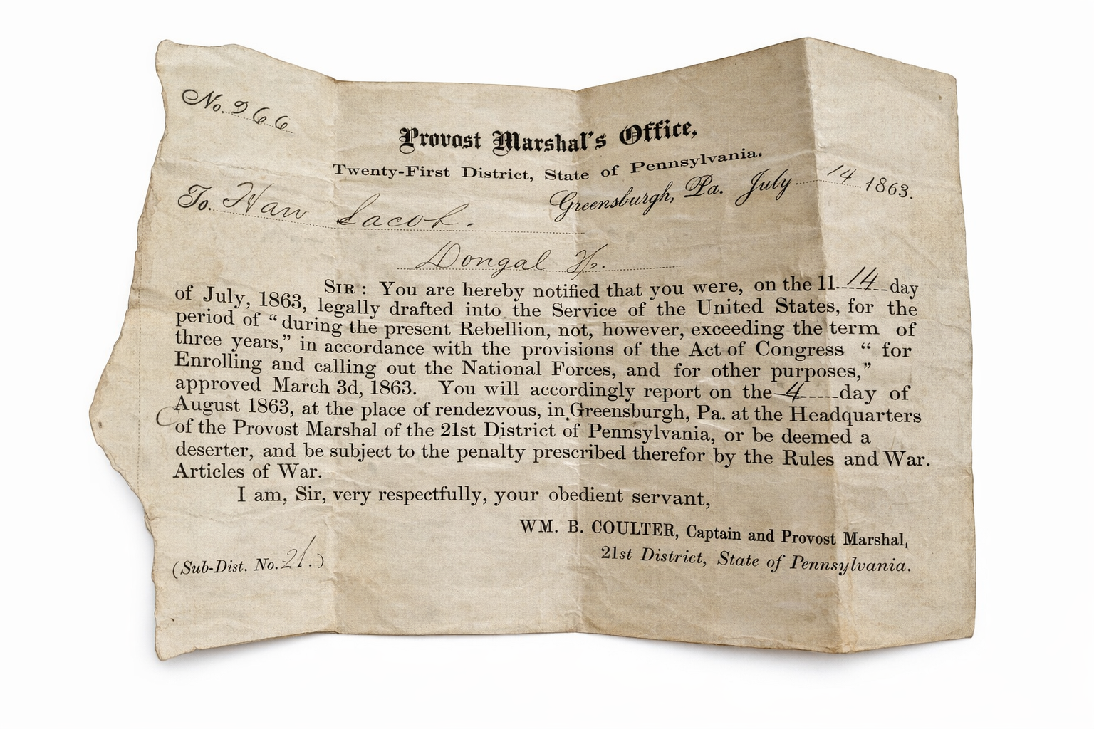 1 Lewis Wiseman of Decatur, Marion county, Indiana, was drafted and placed in the 29th Indiana Infantry.