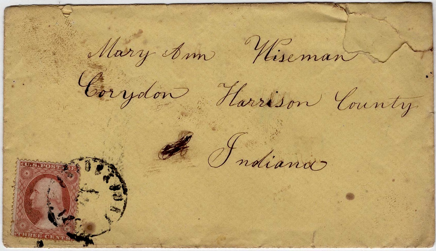 Rachel wrote the letter to her “respected friend” Mary Ann (Byerly) Wiseman (1837-1922) who was married to William Benjamin Wiseman (1832-1909) of Corydon, Harrison county, Indiana, in 1858. Mary Ann was the daughter of Jacob Byerly (1812-1862) and Susan Eliza Wiseman (1817-1869).