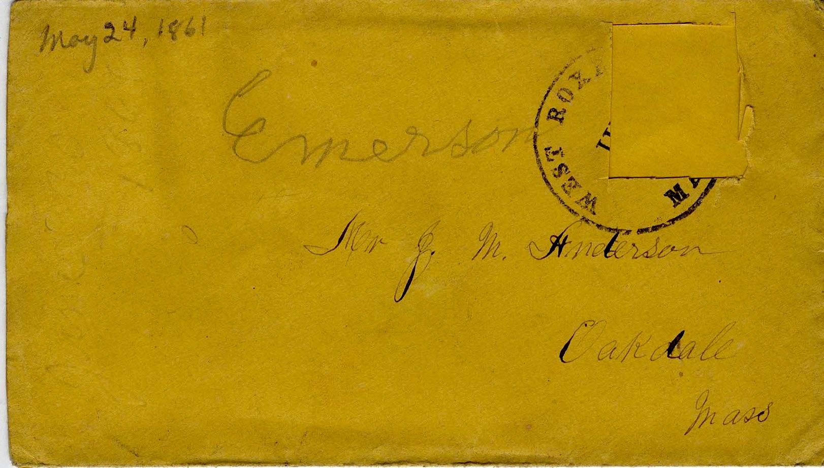 When you write me, send a blank sheet of paper every time as it is no place to keep paper here, it gets so dirty. Yours in love, — J. Emerson