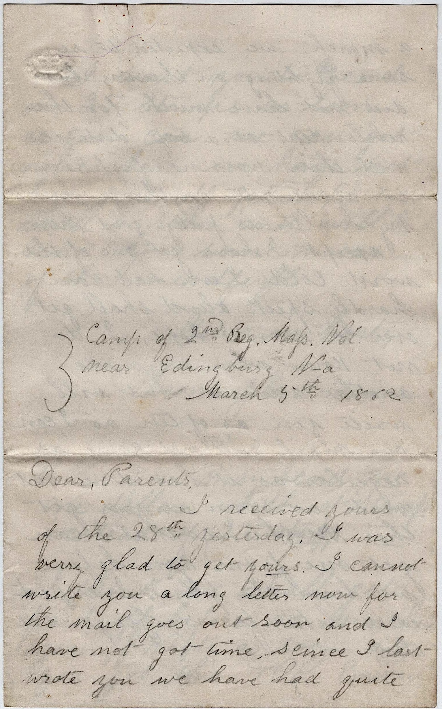 Unidentified, 2nd Massachusetts (1 Letter)