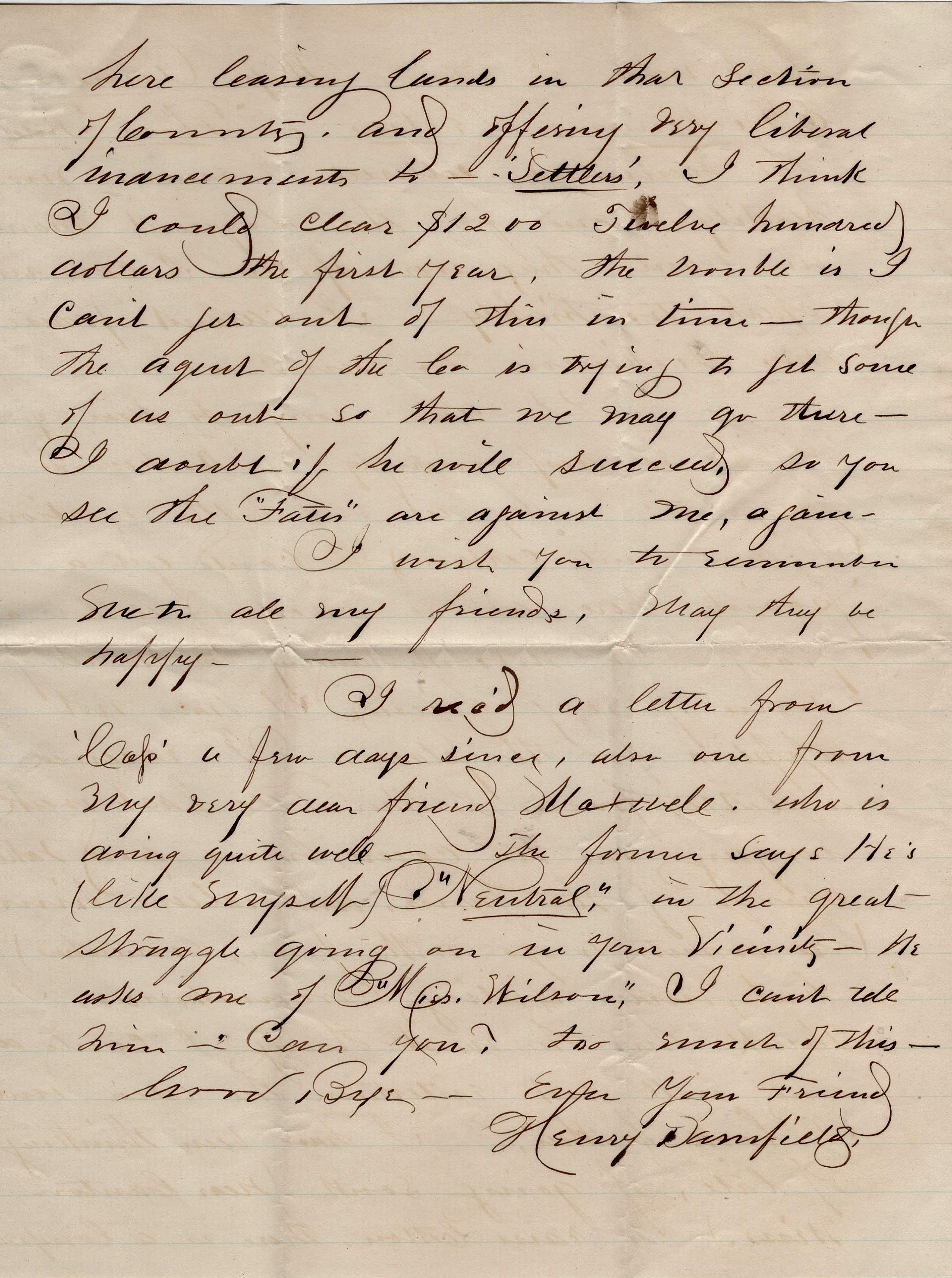 I wish you to remember e to all my fiends….Goodbye. Ever your friend, — Henry Barnfield