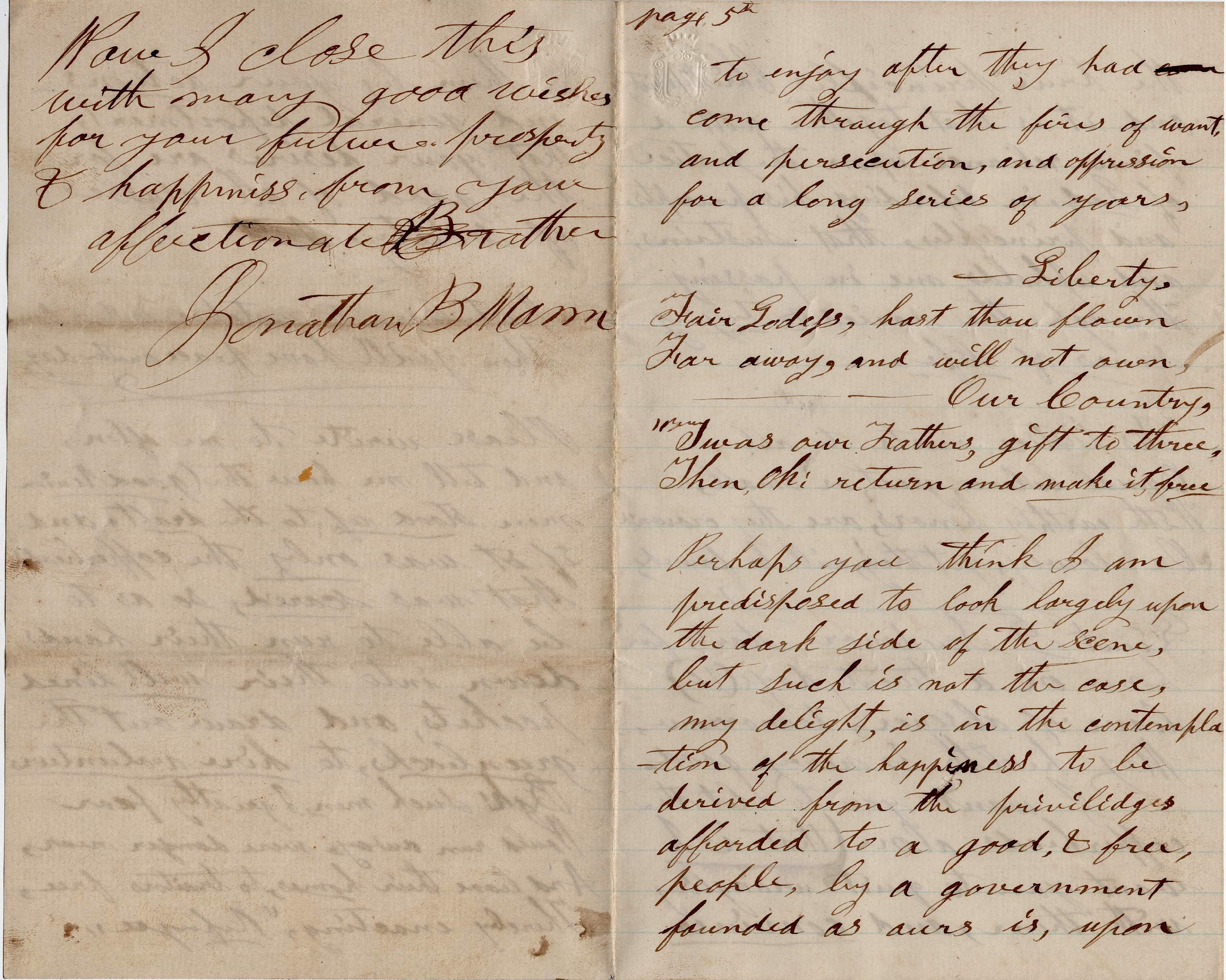 Now I close this with many good wishes for your future prosperity & happiness. From your affectionate brother, — Jonathan B. Mann