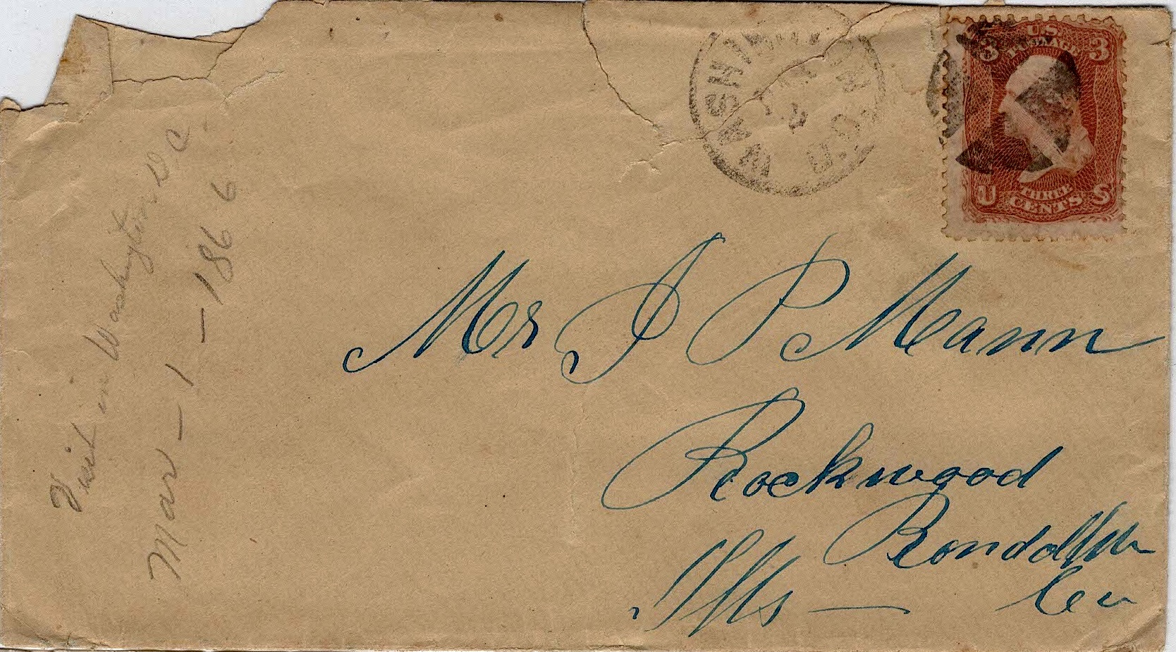 This letter was written by Calvin Anderson Mann (1833-1902) of Perryville, Perry county, Missouri, who was a Captain in the 5th Illinois Cavalry during the Civil War. He wrote the letter to his older brother, John Preston Mann (b. 1822) who served with him in the 5th Illinois Cavalry and, after mustering out of the regiment, began practicing law in Rockwood, Randolph county, Illinois. Calvin wrote this letter in March 1866 while in Washington D. C. during which time he was attempting to resolve some pay disputes he had with the War Department. While there, he stayed with his former friend and comrade, Thomas Henry Barnfield [see 1865-66: Thomas Henry Barnfield to John Preston Mann letters].