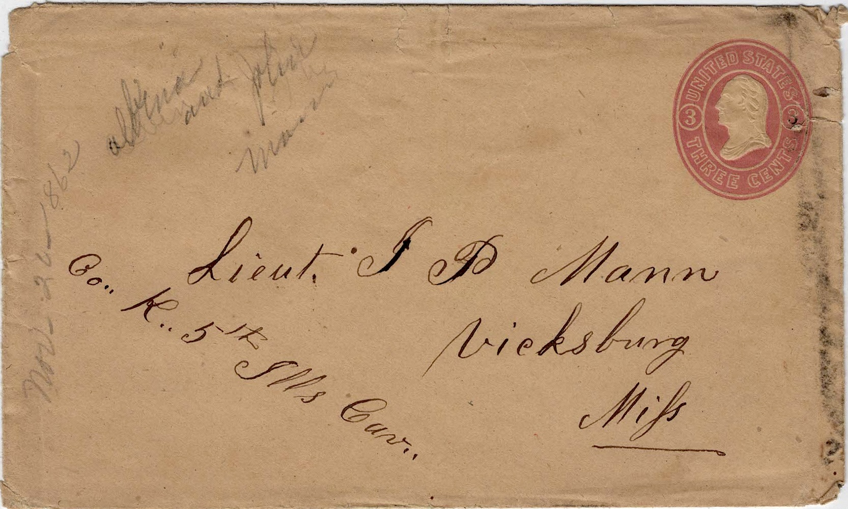 John and Albina had five sons that volunteered to serve the Union cause in the Civil War, They were John Preston (“J. P.”) Mann (b. 1822) of the 5th Illinois Cavalry—to whom they addressed this letter, Robert “Clinton” Mann (b. 1824) who served in the 22nd Illinois Infantry and was mortally wounded in the Battle of Chickamauga, James “Luther” Mann (b. 1826) who served briefly in the 80th Illinois Infantry, Jonathan [“Jonta”] Balch Mann (b. 1828) who served in the 80th Illinois Infantry, and Calvin Anderson Mann (b. 1833) who served in the 5th Illinois Cavalry. All survived except Clinton.