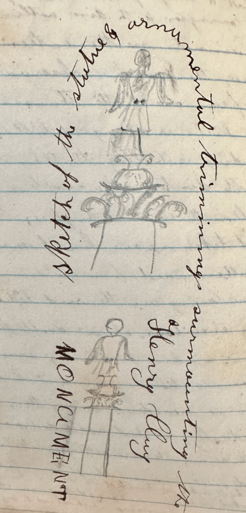 Almon’s crude sketches of the Henry Clay Monument in Lexington, Kentucky