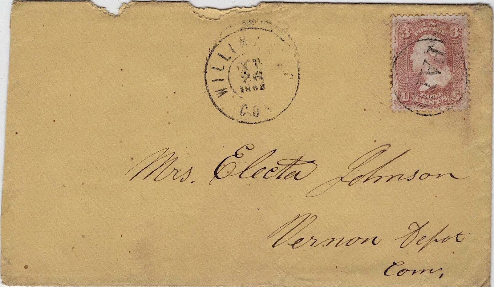 Addressed to Mrs. Electa Johnson, Vernon Depot, Connecticut