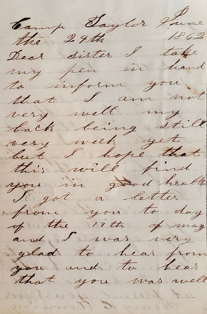 I take my pen in hand to inform you that I am not very well—my back being still very weak yet. But I hope that this will find you in good health.
