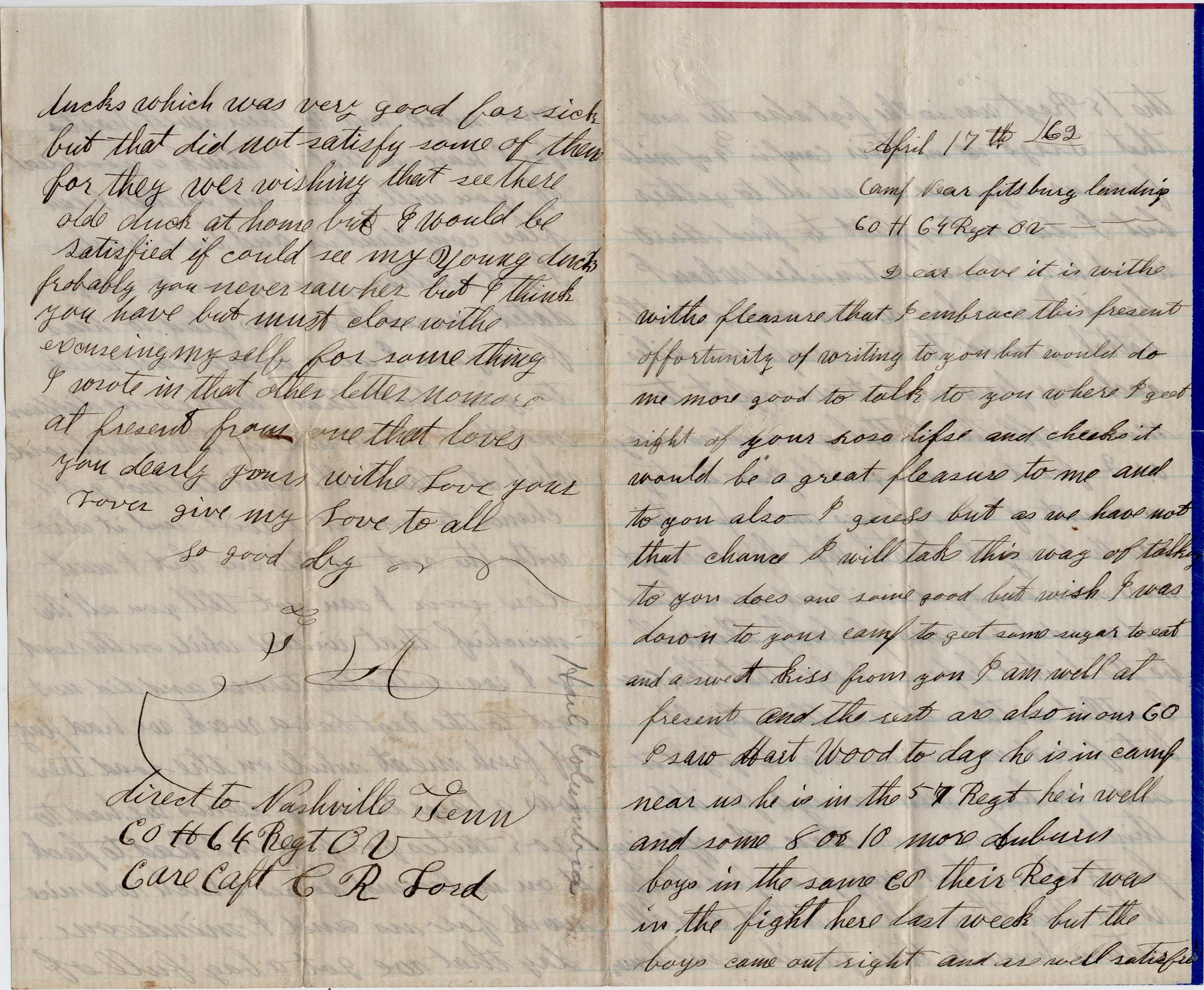 Camp near Pittsburg Landing Co. H, 64th OVI April 17th 1862