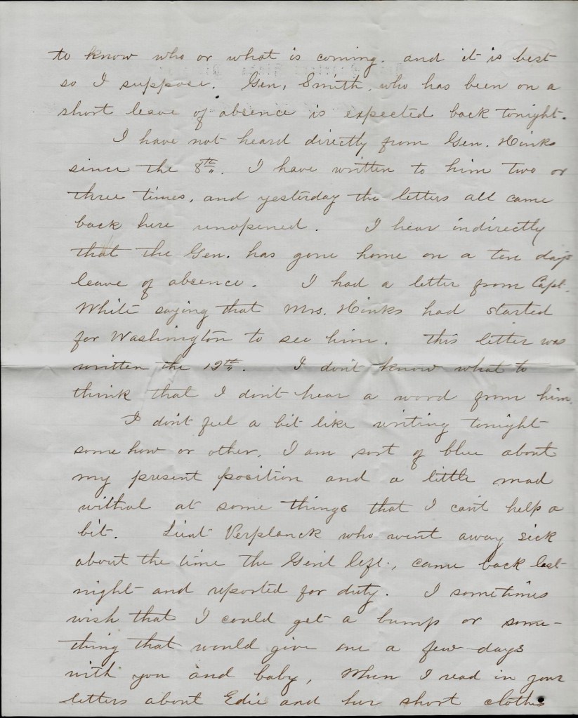 Our soldiers returned last week, There was a great parade made and on next Friday there will be a public dinner given in Staunton. This is a strong Whig country and there is a good deal said about politics but it is here like in other places, the Whigs only take Taylor for his availability. They think better him than none. But they cannot come it in this state by a long ways. There will be a Whig meeting in this place this day.