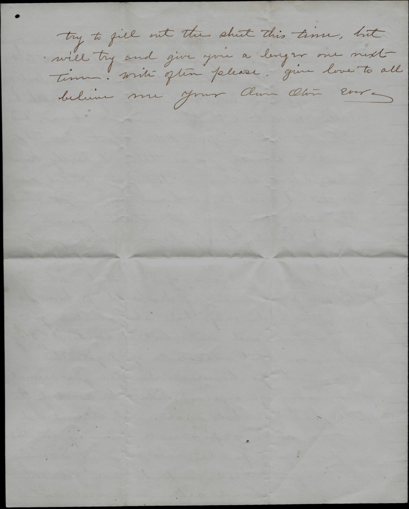 We are well and are doing well and hope that these lines will find you and your kind old mother-in-law and all the family enjoying the blessings. We would like to see you all very much but we must be satisfied by waiting as we are so great a distance apart—trusting to the ruler of all things.
