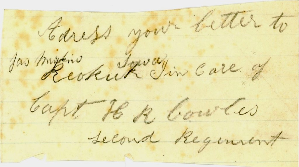 Address your letter to Murkin, Keokuk, Iowa, in care of Capt. H. R. Cowles, 2nd Regiment