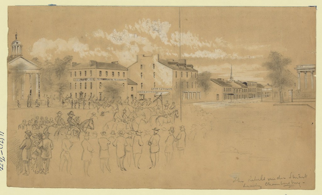 There is nothing very particular here going on. There is plenty of wenches going through camp selling pies. We buy some pies from them. The weather is very warm here and dry. The grass is three inches high and peach trees is coming out in blossom. The mittens I send back home again as I don’t need them now. My dear wife and children, I bid you farewell hoping that I will see you soon. Keep in good heart. Take good care of the children and may God keep you all alive till I get home. Answer this letter as soon as you get it. I will close by saying, God help you. — James Baker