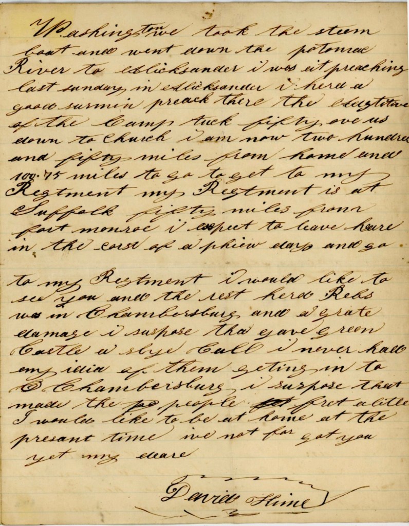 I sit down this morning with my pen and paper to write you a few lines to let you know that I am well as can be expected and hope that these few lines will find you enjoying the same. I received on the 16th inst. one pair of mittens and three papers and one letter from you. I was so glad when I got them. you. say in your letter that you have had hard getting along this winter. you say you have had to carry all your wood this winter. I am sorry to hear this. I am away here in North Carolina far from you enduring the hardships of a soldier. We have to lay on the ground every night and the hardships that we have to endure you at home know nothing about but I thank God that He has spared me till this time. Thank God that He protected me in battle when the bullets flew around us like hail. But what is to become of us in the future, I can’t tell. I had thought we would get home this spring but it is doubtful as there is a very dark cloud hanging over us. I feel like staying it out till it is over, let it be long or short. You wouldn’t want me to come home a coward.