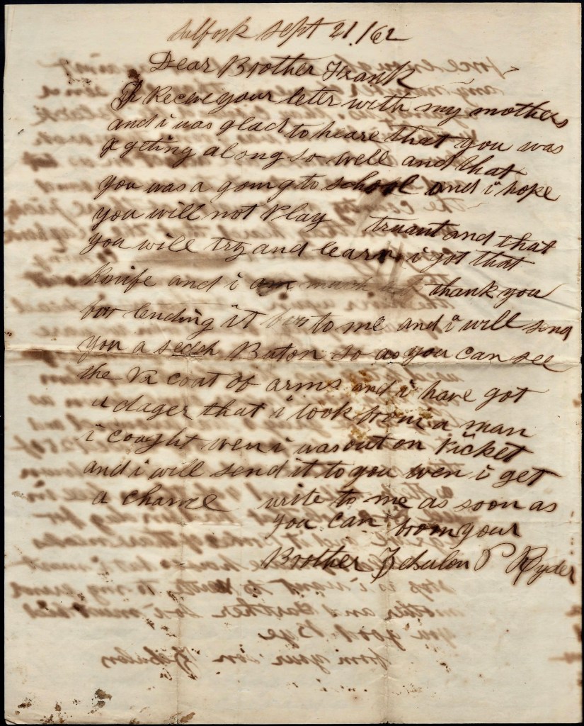 1 The letter that Zebulon Ryder sent to his Grandmother on 21 September 1862 can be found in the digital archives of the Pamplin Historical Park. See 2015.002.081a.