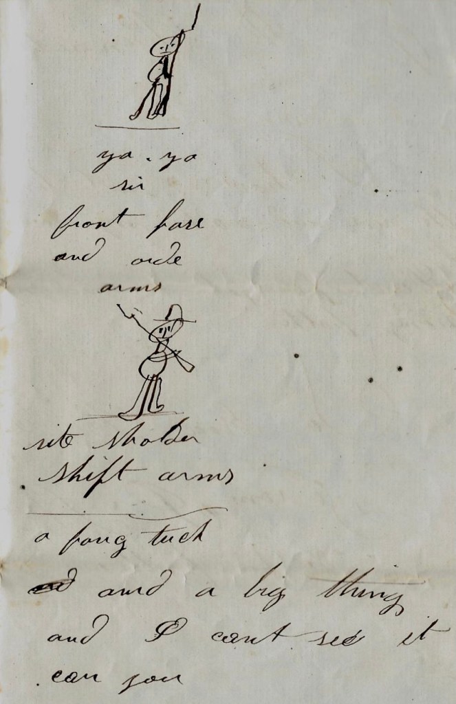 We had to cut wood all of the first night after we got here so that artillery could get a range on a road and we don’t know what hour the Rebs will come up on us. We are a digging rifle pits and doing picket duty. We are to the front now and I am glad of it. I hope the Rebs will come for I want to see them. We have very bad weather. It rains and snows and thunder and lightning a most all of the time and it is awful muddy. We have just come in from picket. We are close to Bull Run and they say that Stonewall is in Bull Run Mountains and I hope we shall see him.