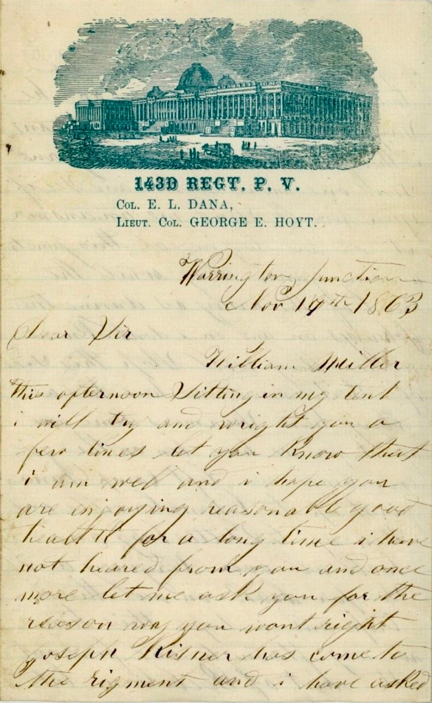 And to commence, I am well—perfectly well, never having enjoyed better health in my life. And our Boys are generally well though some of them complain of colds and I often wonder that we are not all sick, or where sickness never comes. But we have been wonderfully preserved for which we should have been wonderfully preserved for which we should be more thankful than we are. Yet I do try to remember from where the many blessings arise which I enjoy from day to day and from time to time and although many complain of the exposure and hardships to which our regiment has been subject (for which no one can blame them), yet I try to look on the bright side of the picture and to be content with my lot. And I do hope this may find you all enjoying the greatest of blessings—viz, health, prosperity, and contented minds, which rightly appreciated are continual feasts.