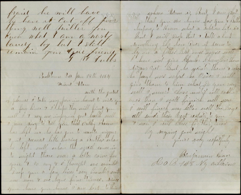 Benjamin Grace, Co. B, 148th New York (1 Letter)