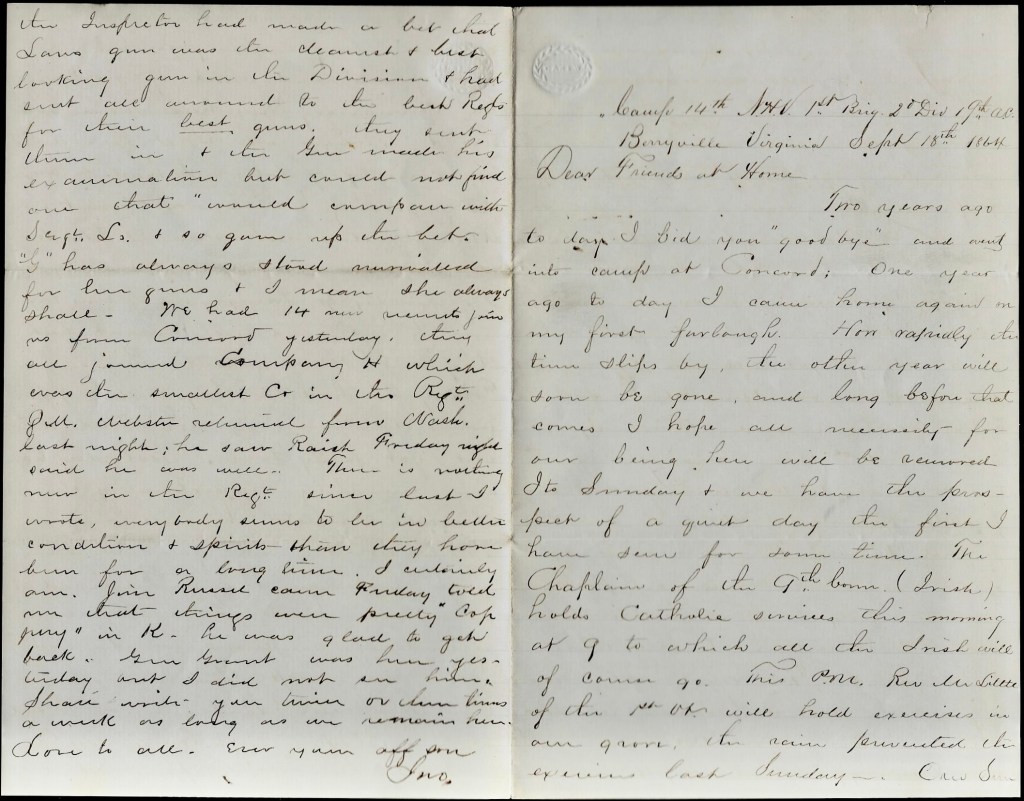 Duncan’s letter is primarily focused on the treatment and care provided to Col. Alexander Gardner (1833-1864), 14th New Hampshire Infantry, following his mortal wounds sustained at the Battle of 3rd Winchester (or Opequon) on September 19, 1864. It can be inferred from the correspondence that the Gardner family harbored resentment toward the regimental surgeon, Dr. William Henry Thayer, for his inability to preserve the colonel’s life. Nevertheless, Duncan offers a robust defense of the doctor’s decisions and actions during in the aftermath of the battle.
