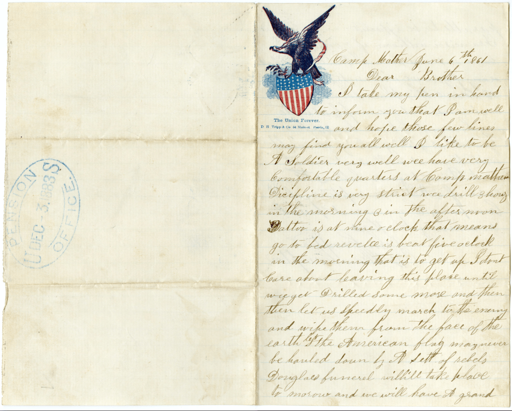 Sunday, July 16, 1864—Aledo, Ills. Heard Mr. Ashburgh in the morning and Mr. Williams in the evening. Went to see Duty Green at Derryton.