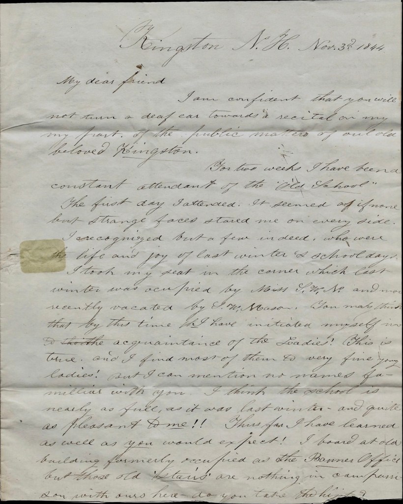 P. S. Shall have much to talk [about] when I see you. T. H. Larkin is here. Old Mr. Handy of Chil & the 2 McMain Boys & sundry others.