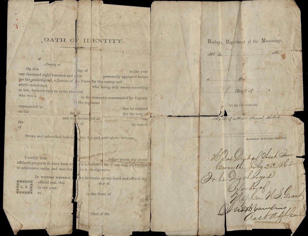You will see by this that I have moved my boarding. I left Pittsburg [Landing] the 14th of this month. John was well when I left. I have not heard from him since. It was some eight or ten days before I left that I saw Don & Edw. They was well when I saw them last. Daniel had been quite unwell but had quite recovered. I lay in our regimental hospital one week before they sent me here. I have been quite sick but I have got so I am able to walk around again. My disease is of the lungs. I thought when I was at Clear Creek that I should quit trying to soldier but went back to my regiment feeling pretty well [and] concluded I would stay to see the ball out at Corinth. But my health would not permit it. I would of got my discharge before I left Corinth but we only had about one hour’s notice of leaving & I had no time to attend to it. My physician told me I would get my discharge, go where I might, but they han’t the power to grant discharges here. Our surgeon has offered me my discharge several times but I did not want one as long as there was any hope of my recovering my health.