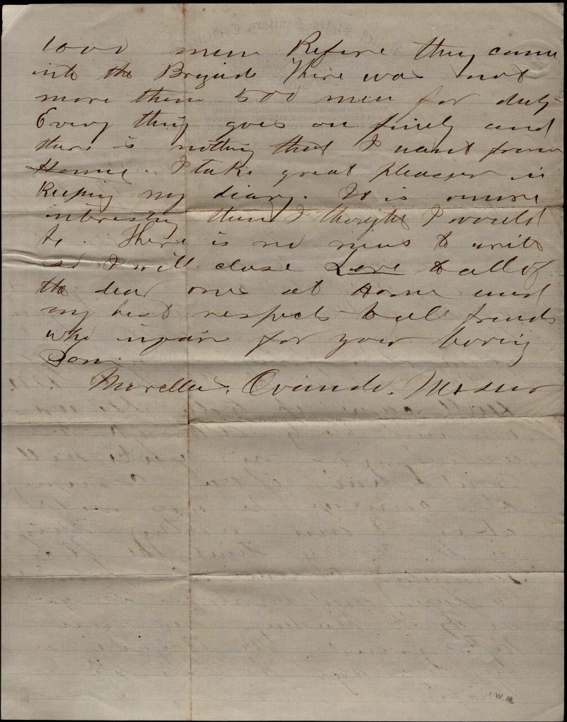 I saw him a few days before he was sent back and he was in good spirits and seemed to think he would be able to stand the service after he got used to it. He looked fleshy but did not look healthy and as much as I wanted to see him, was very sorry he came to the regiment at the time he did. He seemed like a brother to me indeed. And when he came up we did not have the privilege of visiting each other but a few times until the Lord seen fit to take him away.