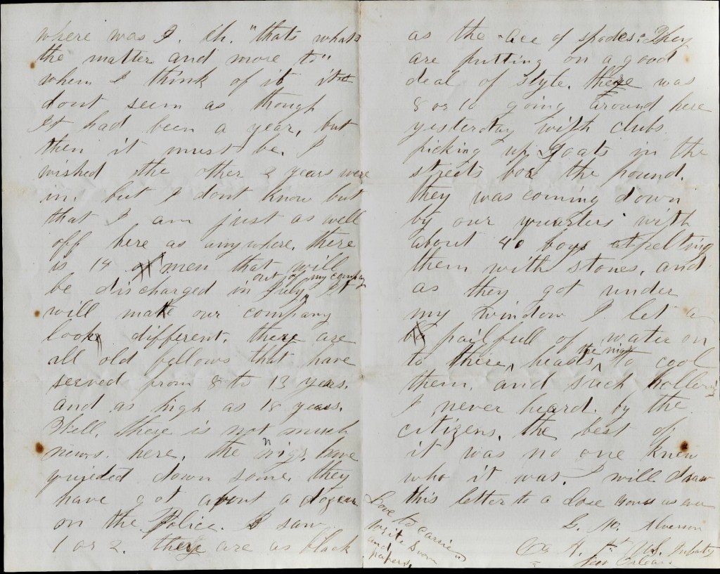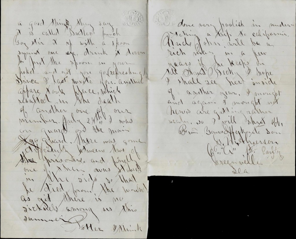 Since leaving Norfolk, I have rather lost track of some of the Bristol boys who are not at their regiment, Louis among the number, and I must hunt them up now that I have tome to write. But I must close. Write as soon as convenient and remember me as ever. Your true friend.