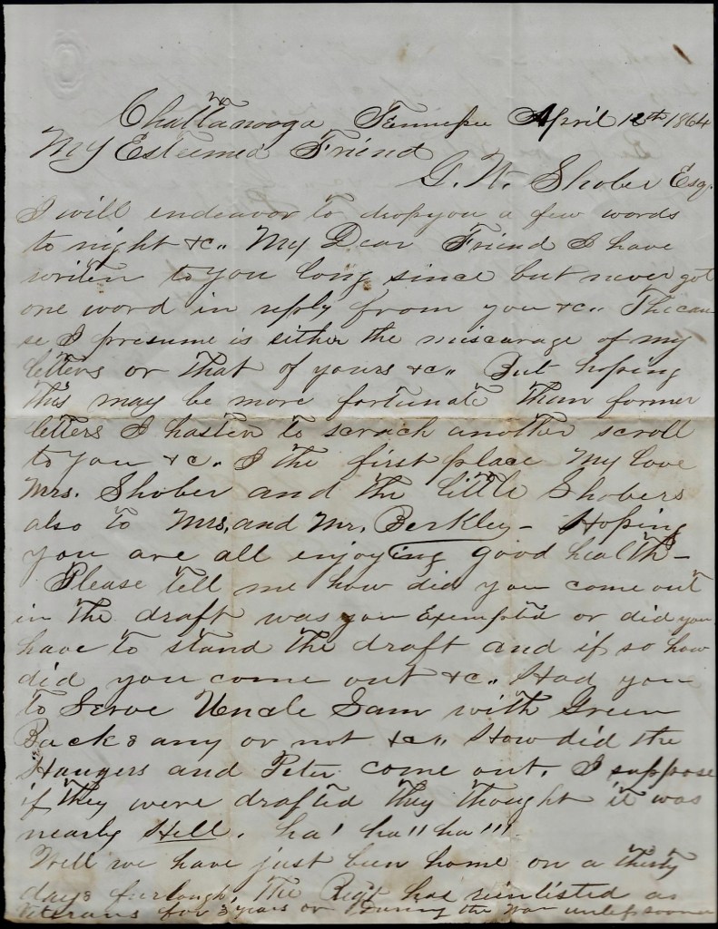 Tuesday, 11th [November 1862]. I am in a desperate situation at this time! Governor Morton has issued an order to Sheriffs and Provost Marshalls in the various counties throughout the State [of Indiana] to immediately arrest all deserters, stragglers, and soldiers who may be home without leave of absence, and send then to Indianapolis for trial. No doubt but a great many of them will be shot. I have no money or else I should have left ‘ere this. I shall try to borrow a little this evening or early tomorrow morning. It seems that I was born to bad luck and constant misfortune. Probably the scale will turn soon. My misfortunes began on the unfortunate day that Master Horace Boston [Barton?] 2 threw me down on the frozen ground. Ever since then my life has been one continual disappointment and draw back. I went to Cincinnati to become a great painter, and came home in a short time a beggar. I joined the army and fell sick in four weeks afterward. I went again and in four weeks more, I was again taken sick and lay in the hospital for eight weeks. I at last got home on a thirty day furlough more dead than alive. My furlough was never renewed and for a long time I violated the army law by not returning to my regiment. At last I started but before I reached the end of my journey, I came near dying and was again sent home more dead than alive. Then I went to Indianapolis to get a discharge but was arrested and sentenced to work six months upon the breastworks at Memphis, Tennessee. I made my escape and came home again, more dead than alive. Then I was advertised as a deserter and shall now have to flee for my life. This has taken most all my patriotism away and the whole country may go to “Old Nick” for all I care.