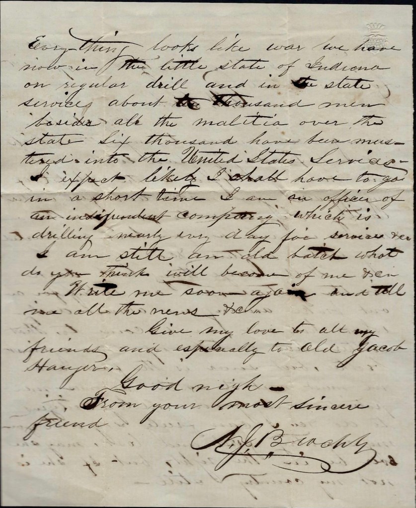 2 I have not been able to identify Master Horace Barton (or Boston) was but my hunch is that he may have been a school master at the Quaker school that James attended in Ohio. He doesn’t give the name of the school but he mentions acquaintances in Mount Pleasant so I’m inclined to believe James attended the Mount Pleasant Friends Boarding School in Mount Pleasant.