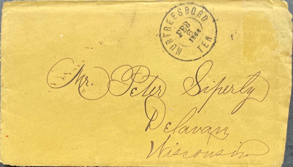 Addressed to Mr. Peter Siperly, Delavan, Wisconsin Postmarked Murfreesboro, Tennessee