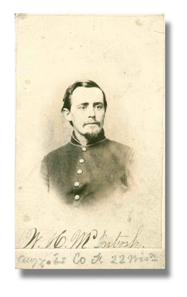 I could not find an image of John but here is a cdv of William H. McIntosh who served in Co. F, 22nd Wisconsin Infantry (WHS)