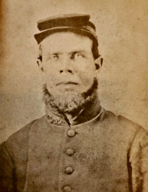 Last Sabbath Stephen and Frank and myself were detailed to stand guard in a depot and we had a good time for we had a good place to sleep and a plenty of sugar & molasses & hard crackers to eat & a coal stove in the office to lie down by with blankets to lie on with our knapsacks to put our heads on. About noon Sunday, Stephen went back to camp (a distance of a mile) and got some beef and coffee and brought it back and went across the road to a slave’s house and got them to fry the beef and make us a cup of coffee and put some milk in it and we had a most luscious supper. And as we sat by the stove and ate our supper, it made us think of home firesides so much so that Stephen & Frank wrote letters home most all night while I lay and snoozed my regular four hours.