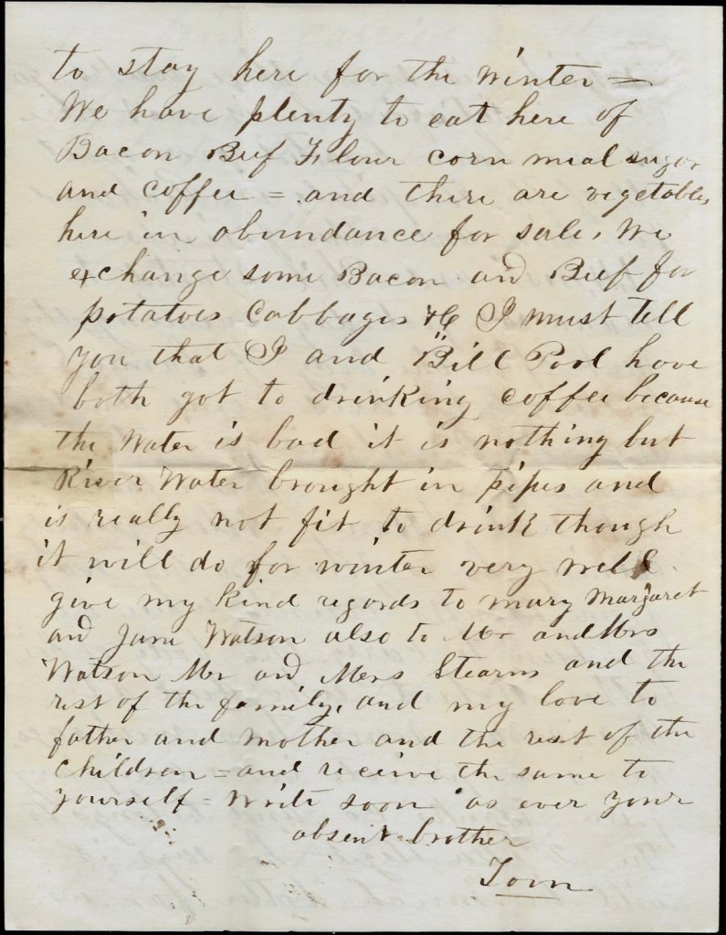 You must give my love to all and receive the greatest part for yourself. Direct your letters as you did before to the regiment. Goodbye my love, — T. W. G. Inglet