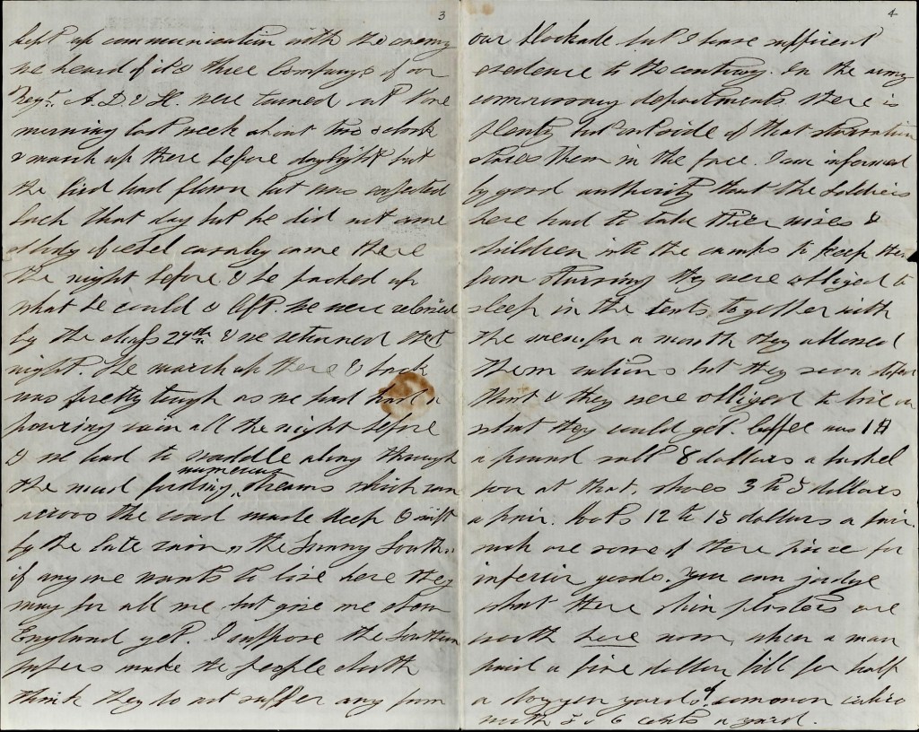 The rebels have been making unusual demonstrations lately in our neighborhood. You have probably heard of the attack upon Washington, N. C. about 35 miles from here. Since then our pickets have been driven in several times by bands of rebels, but no further demonstrations have as yet been made. Probably they don’t like the looks of our fortifications. Reconnoitering parties are sent out almost every day but generally they don’t meet with any large bodies of rebels—only a few scattering ones now and then.