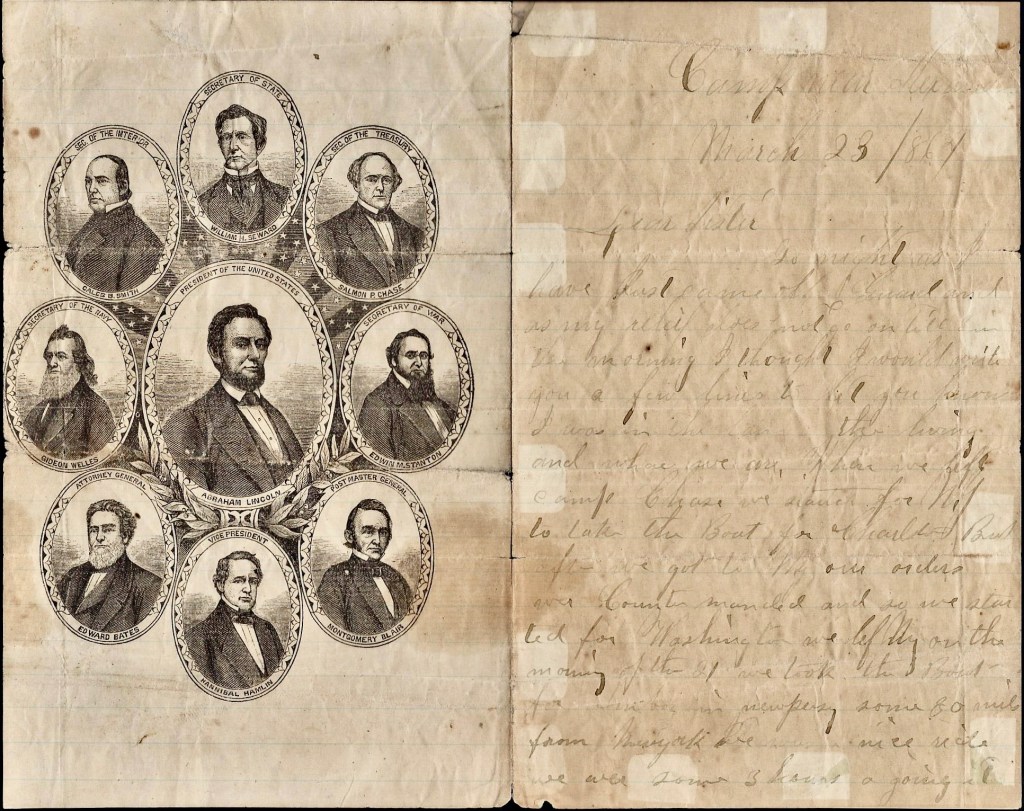 Lee Lapham wrote his letter on stationery that included an engraving of President Lincoln and his Cabinet at the time (1864)