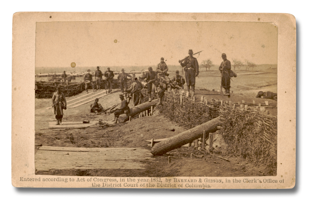 The wooden log (“Quaker”) guns found on the breastworks at Centreville when the Confederate army withdrew in March 1862