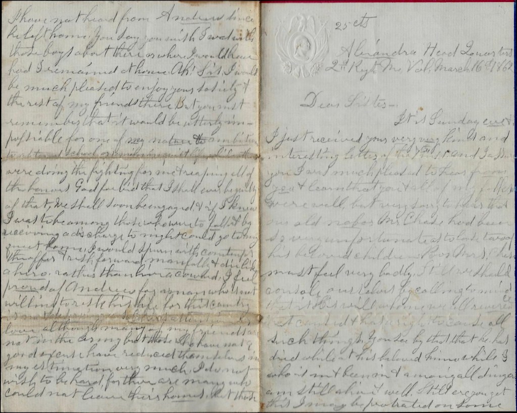 Alexandria [Virginia] Headquarters 2nd Regt. Maine Volunteers March 16th 1862