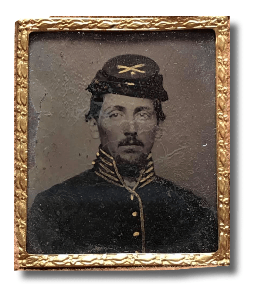 According to pension records, Daniel enlisted in the 2nd Veteran Cavalry Regiment (nicknamed the “Empire Light Cavalry”) at New York City on 1 December 1863. It was stationed at Washington during the ensuing winter, whence it embarked for New Orleans, and there joined the Department of the Gulf. Its entire term New York Regiments 203 of service was spent in the South, where it formed part of Arnold’s cavalry division, 19th corps. Assigned to the 5th cavalry brigade, it took part in Banks’ Red River campaign, in which it was 18 times in action. It was assigned to the 4th cavalry brigade on its return and through June, July and August was engaged in a number of raids and scouting expeditions, meeting with some losses.