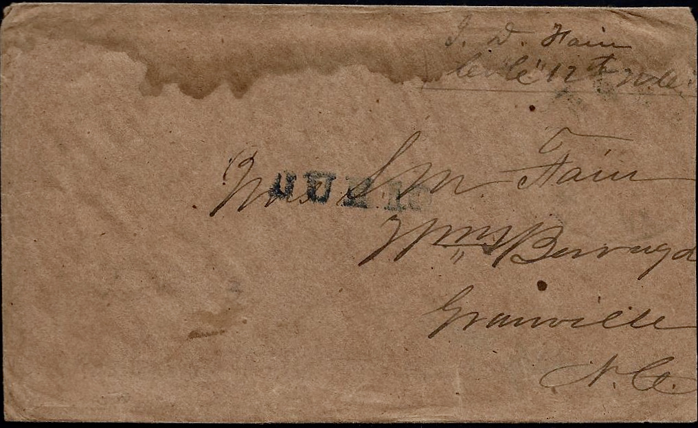 Addressed to Mrs. S. M. Fain, Wm. Buruga, Granville, North Carolina