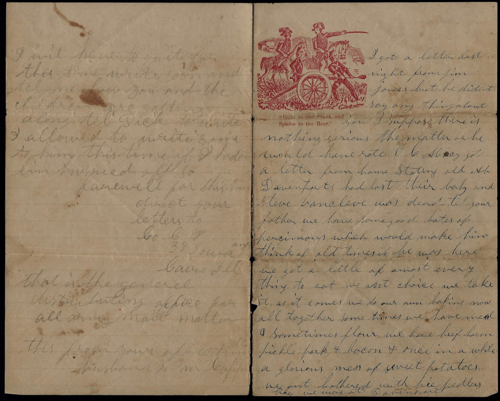 So farewell for this time. Direct your letters to Co. C, 39th Iowa Infantry, Cairo, Illinois