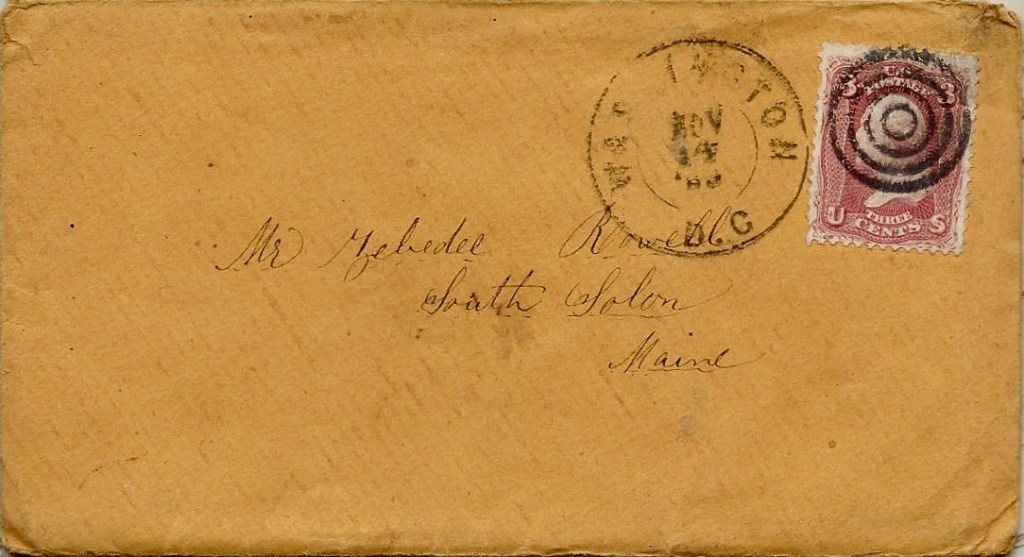 Addressed to Mr. Zebedee Rowell, South Solon, Maine