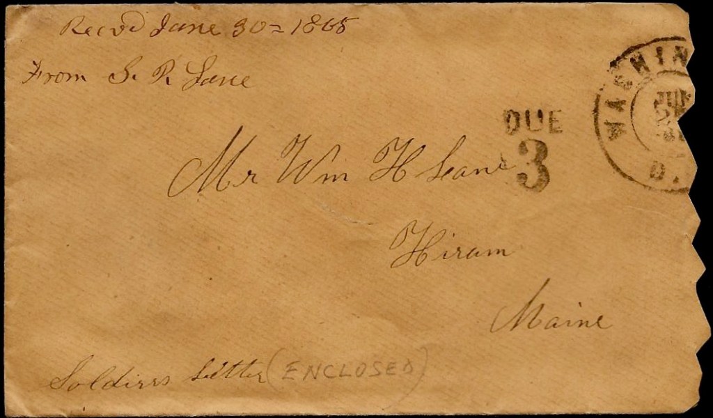 Direct your letters to Mr. Wm. N. Lane, 9th Corps, 3rd Division, 3rd Maine Battery, Washington D. C.