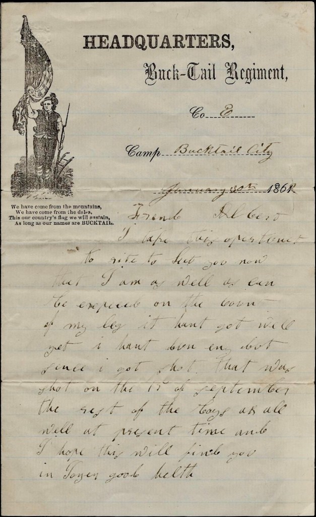 Headquarters Bucktail Regiment, Co. E Camp Bucktail City January 30th 1862