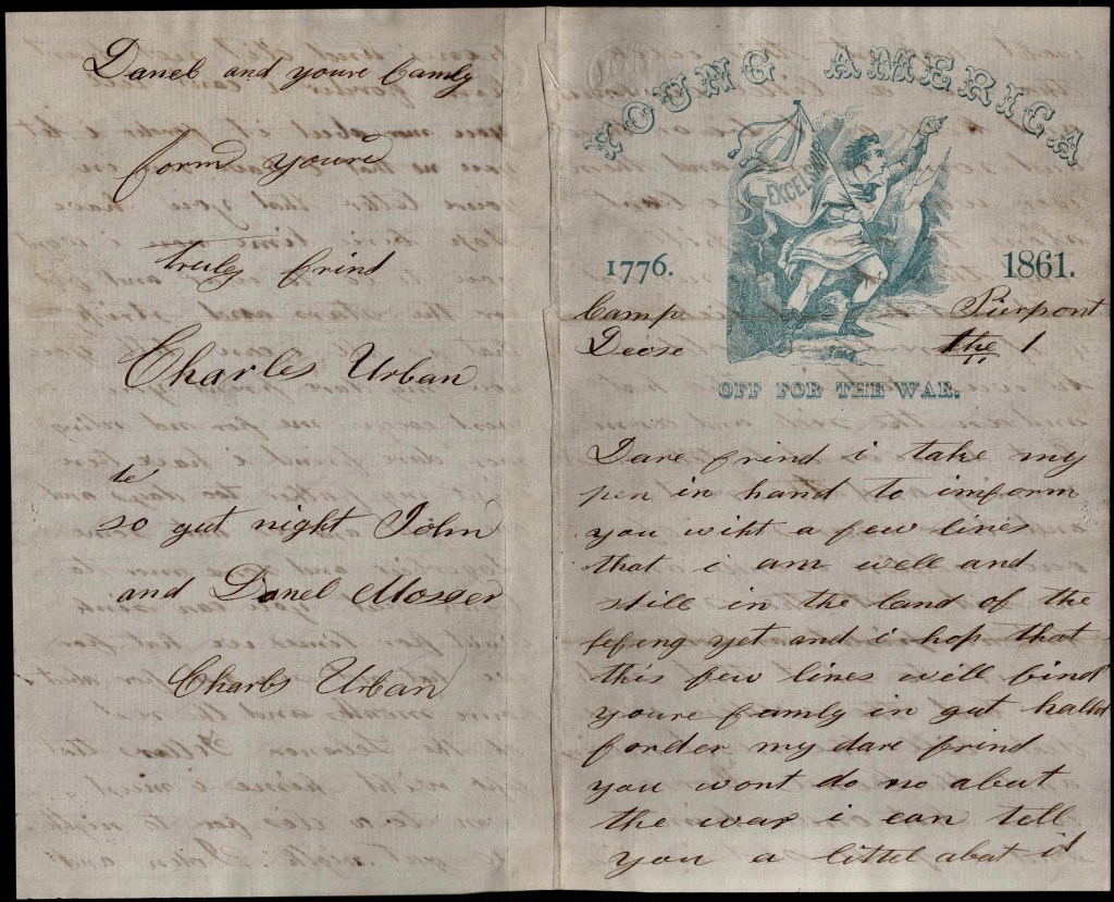 Further, I let you know that I have seen in your letter that you have stopped berry time now [and] I want you to come to war and fight for the stars and stripes. That is all I can tell you now, my dear friend. You must excuse me for not writing more. Dear friend, I have been with my father two days and one night and we had some Lager beer and some more to drink, but you can see what fun times we had for we have not seen each other for about four months and the rest of the Lebanon fellers that left with him.