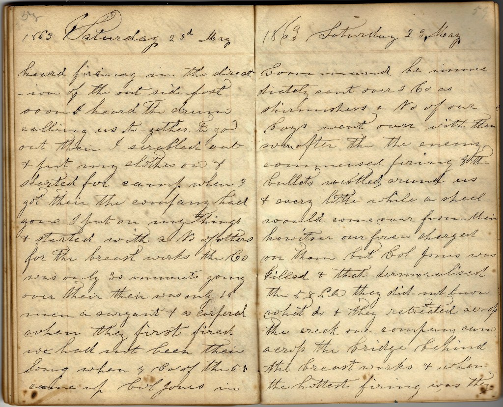 We moved our camp the 24th one mile south back and between the fork and on the edge of the city. All of the soldiers are inside of the fortifications & thousands are digging rifle pits & cutting trees to block the Rebs if they come to retake Newbern. We are skirmishing with them every day eight miles northwest from here. They are trying to make us keep a large force here or are coming in force. We hear that Longstreet & 40,000 are at Kinston & this side. But the funerals will be all on one side if they try to come here. We can keep back 50,000.