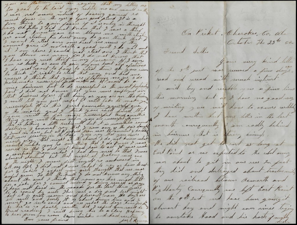 On picket, Cherokee County, Alabama October 23rd 1864